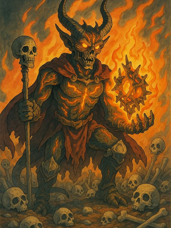 Hedron established his workshop, the Boneforge, atop a mountain of charred corpses in Avernus. Here, he fashioned engines of torment, living weapons bound in sinew and steel, and infernal contraptions that pulsed with hellfire. Every creation whispered with the agony of the souls consumed to power them. His mastery of flame was not mere pyromancy—it was the alchemy of annihilation, shaping fire into precise instruments of war.