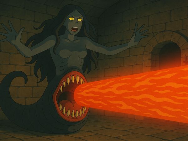 Before the first battles of the Blood War, before the Nine Hells and the Abyss carved their eternal scars across creation, there was Zugot Moi. Born not of natural chaos, but of blasphemy, she was woven together from fragments of primordial nightmares and the malice of an ancient cult. Where other demons embody singular vices, Zugot Moi embodies hunger itself—an insatiable maw that devours light, faith, and even hope. Her form reflects her truth: a serpentine horror crowned with a woman’s face of cold beauty, yet marred by the monstrous mouth yawning from her stomach, forever gnashing, forever starving.